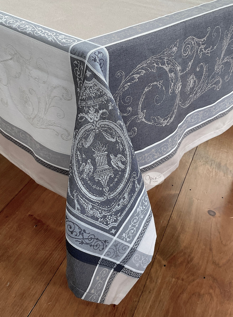The history of Jacquard linen begins in 1806 when Monsieur Jacquard invented his ingenious Jacquard Loom in response to King Louis 14th’s appetite for elaborate and beautiful fabric. Famous for their complexity of pattern and range of colors, the designs are woven into the fabric, not printed, the pattern evident on both sides of the cloth. 100% cotton, the tablecloths are soft to the touch with a lovely drape. One would never suspect the modern twist of Teflon™, incorporated into the thread, until a spilled glass of red wine (or any liquid) just beads up on the cloth. Simply blot dry and machine wash….. these linens are elegant, colorful and easy care. Bon Appetit!