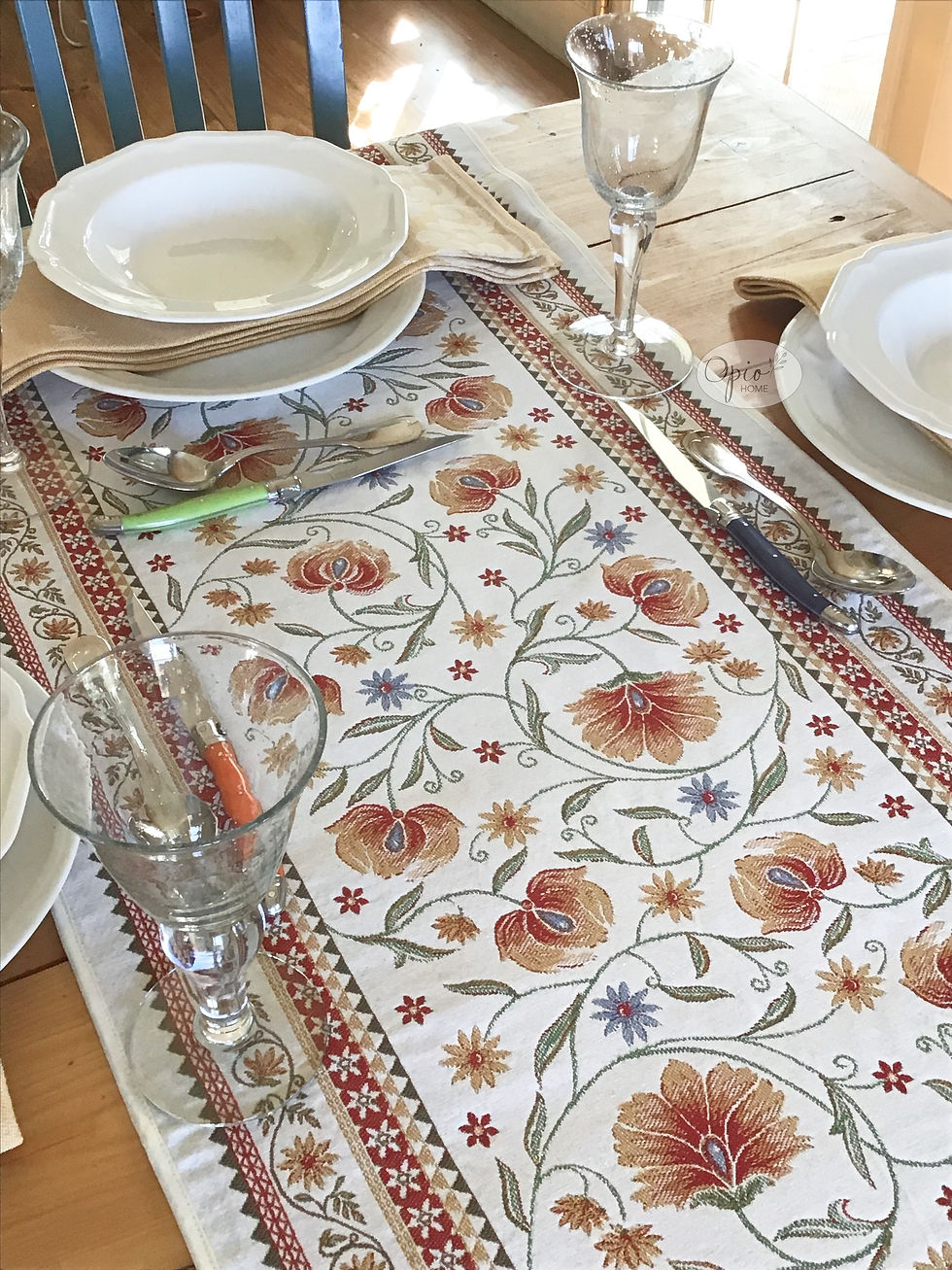 The genius of the Jacquard Loom is never more evident as in the stunning patterns of our Tapestry Weave runners and tablecloths. Close inspection reveals a double weave that is tight yet soft, complex and textured, boasting vibrant yarn dyed colors. A blend of cotton and polyester, they are easy care. Grace your dining table or sideboard. Use as an accent piece at the end of a bed. A thoughtful wedding gift ! A family heirloom! There is a pattern for the romantic, the whimsical, the traditional and the contemporary aesthetic. Use your imagination for they are a textile worthy of display.